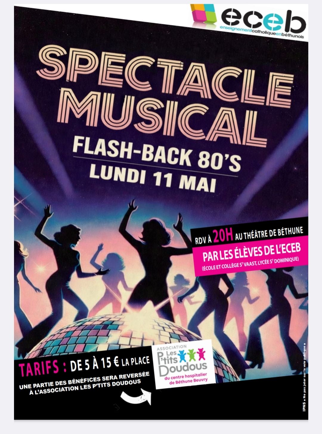 Les élèves (école, collège et lycée réunis) et les enseignants vous embarquent pour un spectacle musical explosif, Flash-back 80’s, où musique, danse et énergie rétro feront vibrer la scène.